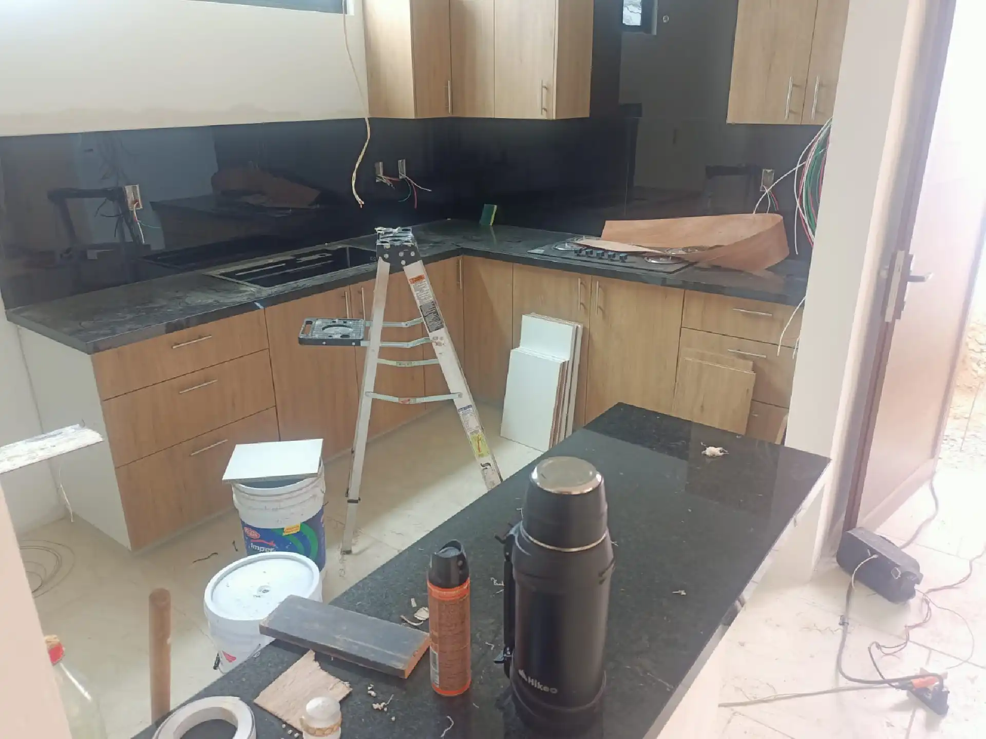 Cocina abierta de granito con muebles y parrilla